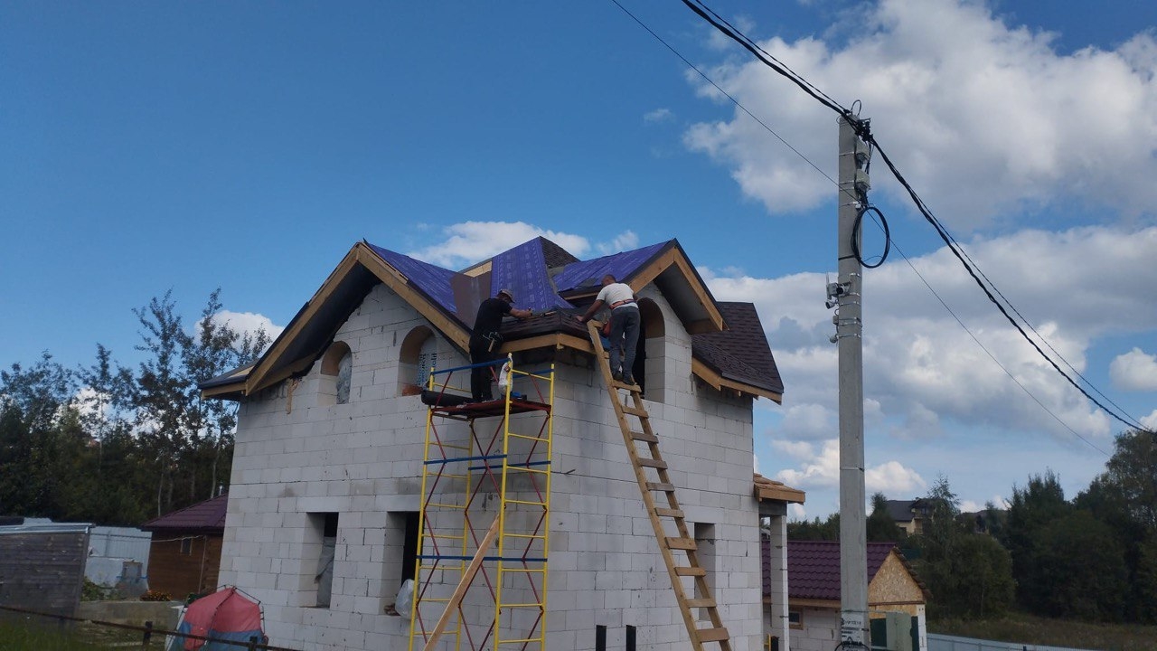 Монтаж кровли из модульной металлочерепицы + стропильная система, гидроизоляция, обрешетка